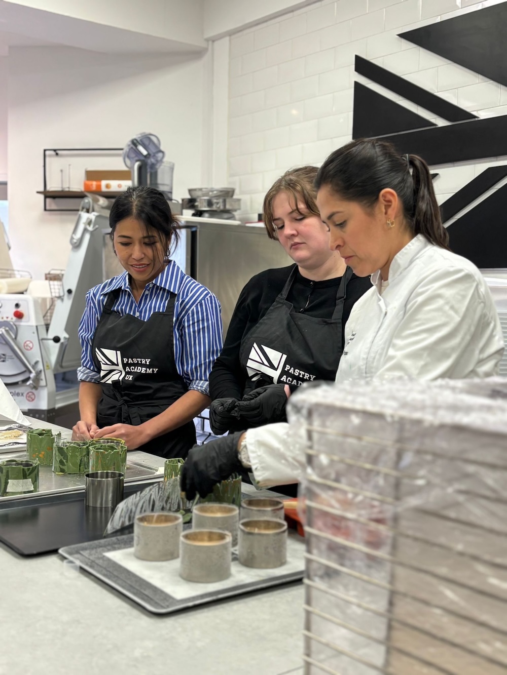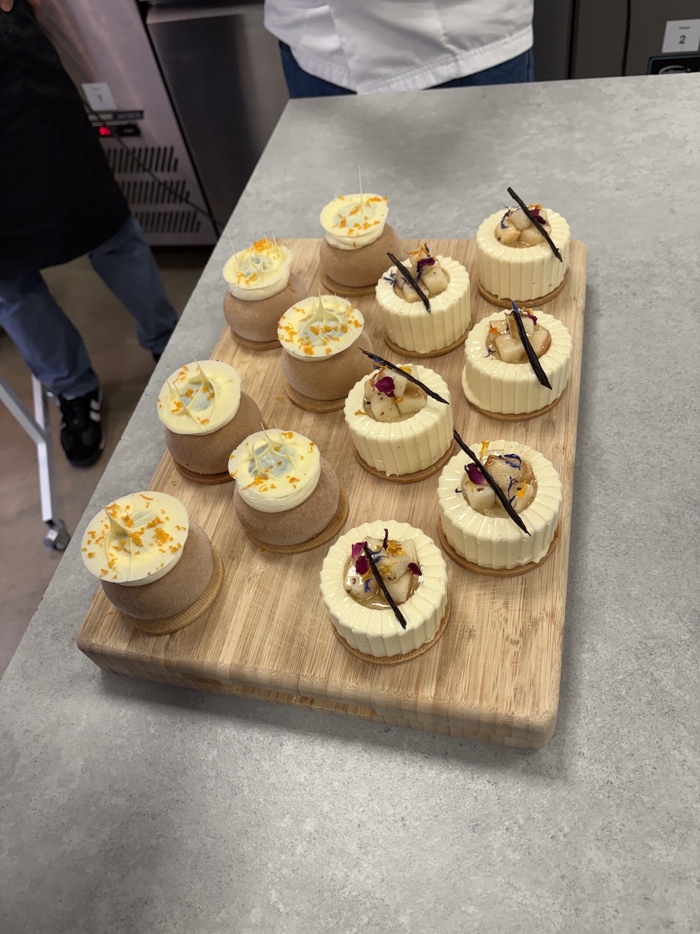 The other two groups finished their cakes as well with minimal issues, the flavorings were very interesting. We got to taste all of the different desserts, I was a fan of the matcha peach and the lychee insert. Some of the flavors were a bit too much or not enough, however this exercise was not about the taste.