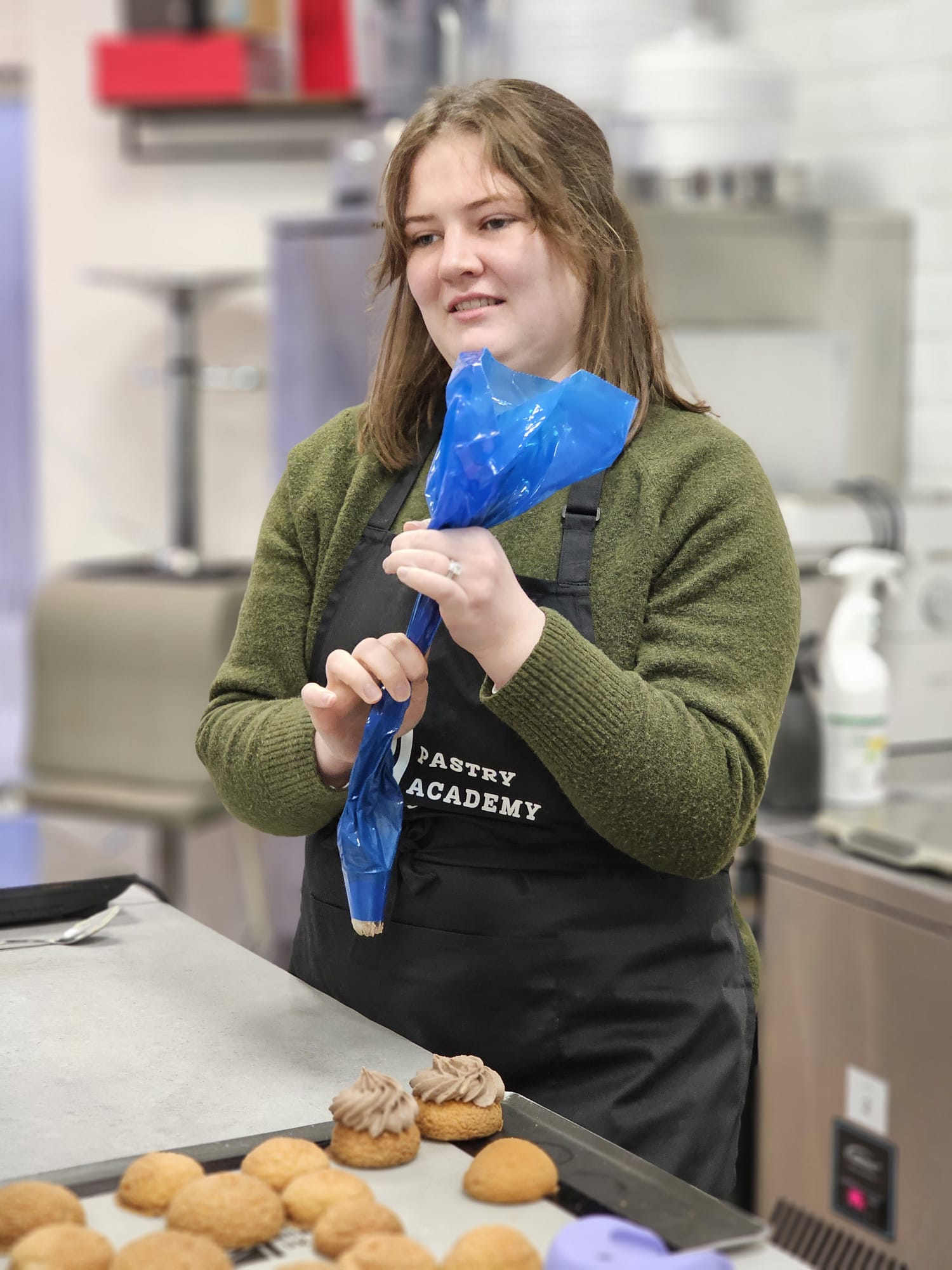We finished class by filling the cream puffs with whatever was left and topping them with a mousseline. The mousseline was made by whipping butter with pastry cream and we just used whatever was left from the chocolate and vanilla pastry creams. Of course we also got to take what we could home, need some friends to come visit to try all these goodies!